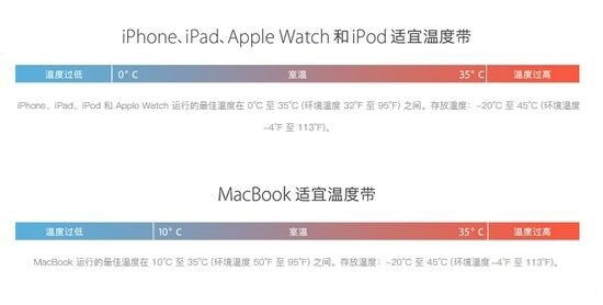 其實是太冷了!由近日全國性的低溫所導(dǎo)致,蘋果官網(wǎng)對旗下電子產(chǎn)品的操作環(huán)境要求顯示,iPhone、iPad、iPod和AppleWatch的最佳操作環(huán)境為0℃-35℃,而MacBook的最佳操作環(huán)境為10℃-35℃。而目前北方很多地區(qū)都在-10℃以下,溫度已經(jīng)低于iPhone最佳操作溫度太多。
