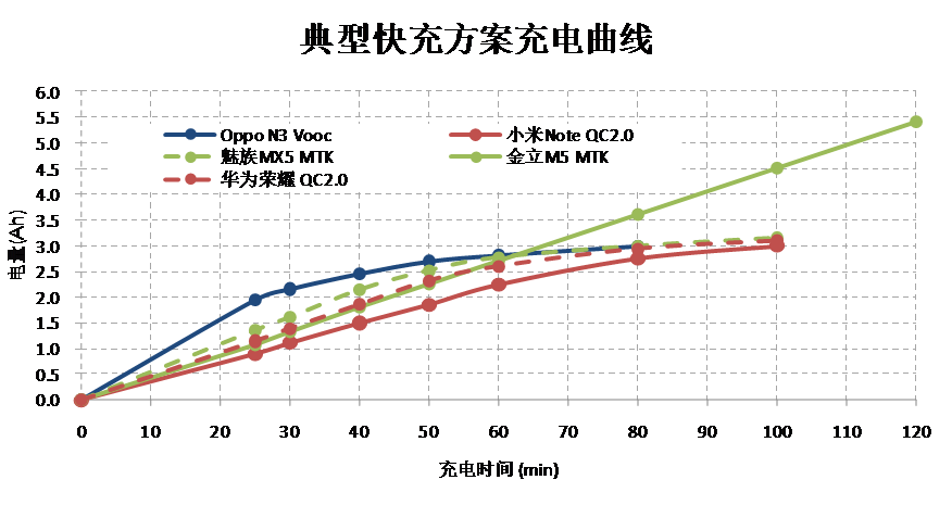 但是隨著智能手機(jī)快速普及,手機(jī)電池容量越來越大,出現(xiàn)了快速充電的需求,目前已經(jīng)有多個(gè)標(biāo)準(zhǔn)如OPPOVooc標(biāo)準(zhǔn),高通的QC2.0標(biāo)準(zhǔn),MTK的PumpExpressPlus的標(biāo)準(zhǔn)橫出于世。在快速充電的情況下,在前30分鐘內(nèi)的電流會(huì)很大,一般會(huì)達(dá)到3A左右。